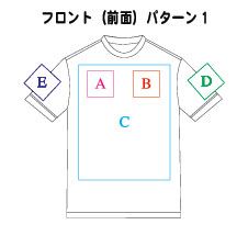 ■プリントの位置について Tシャツにプリントできる位置は下記の通りです。 お見積もりフォームでプリントしたい位置を入力してください。