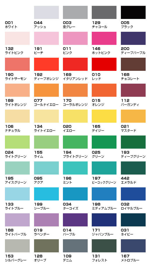50色×16サイズを取りそろえております。