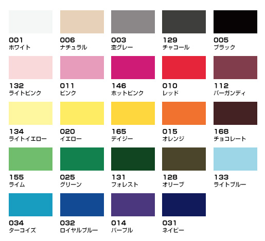 全24色・6サイズを取りそろえております。