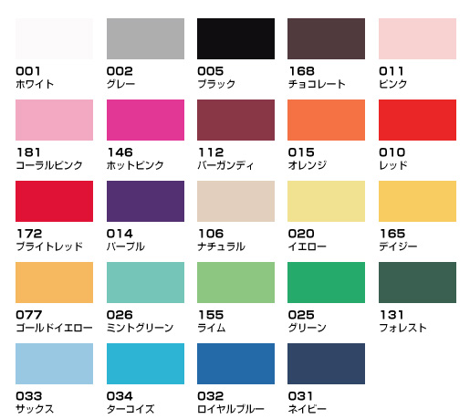 色サンプルの色彩は実際の色とは異なります。 |