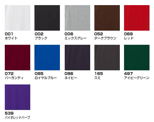 素材:綿100%(天竺)/ミックスグレーは綿90%ポリエステル10% |